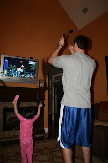 Kirk loves to play basketball and golf on the Wii. Ema joined right in. It was so funny because she would watch Kirk and then tried to copy everything he did.